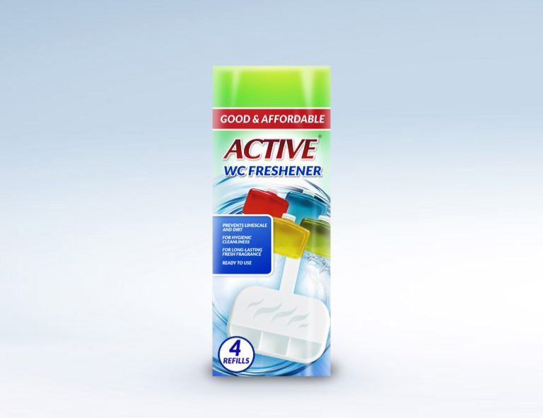 ACTIVE WC FRESHENER żelowe zawieszki, które wspomagają zachowanie prawidłowej higieny w misce ustępowej. Produkt po każdym spłukaniu wodą aktywuje świeży zapach oraz specjalną formułę detergentową Power Active, która zapewnia długotrwałą ochronę w obrębie toalety.